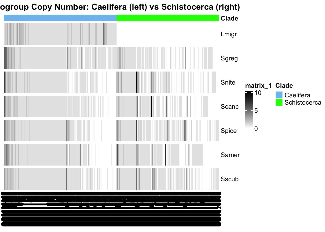 main = "Orthogroup Copy Number: Caelifera (left) vs Schistocerca (right)",