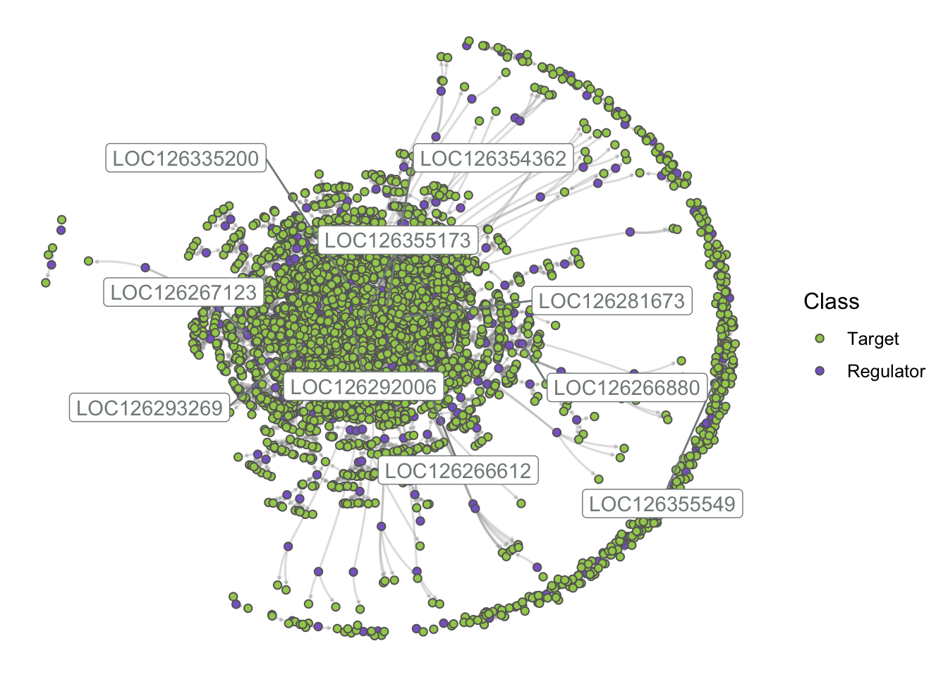 plot_grn(grn, top_n_hubs = 10)